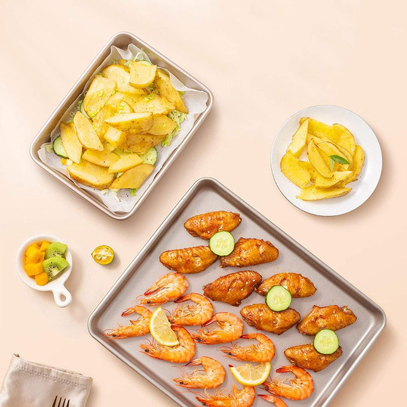 ?Various Cuisine to Choose- This nonstick 11x9 baking pan set has good performance in commercial and family oven baking. It is a perfect size for baking cookies, pastry, lasagna, jelly rolls, pumpkin, chicken and vegetables, etc. Just one can easily satisfy your daily baking needs.