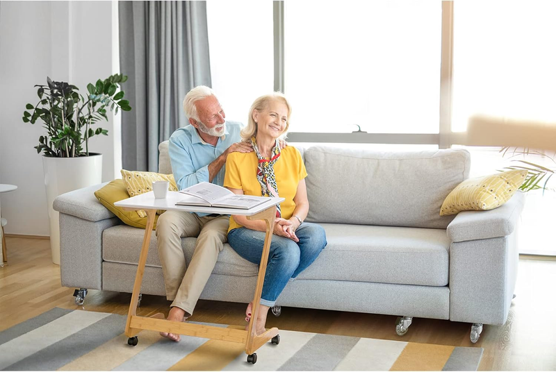 TV Tray Table with Wheels Sofa Side Table with Casters Couch Laptop D
