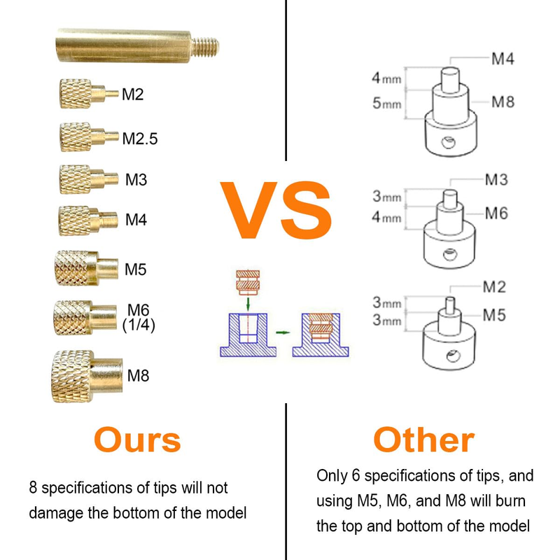 It can be used fo including PLA, PETG, ABS, PPS, PP, and more, this Machine find applications in 3D printers, electrical molding machines, automotive plastic shells, and laptop molds Threaded Inserts
