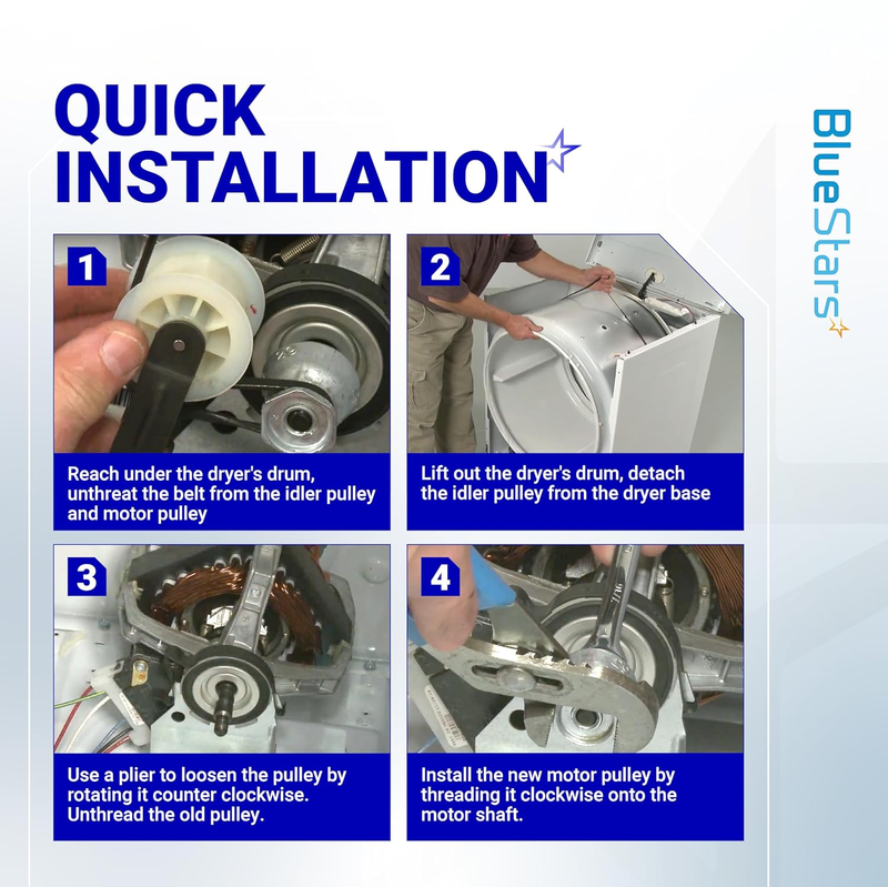 Enjoy the comfort that our dryer motor pulley dryer drum belt brings into your dryer - BlueStars provides DIY solutions to help you deal with any troubles