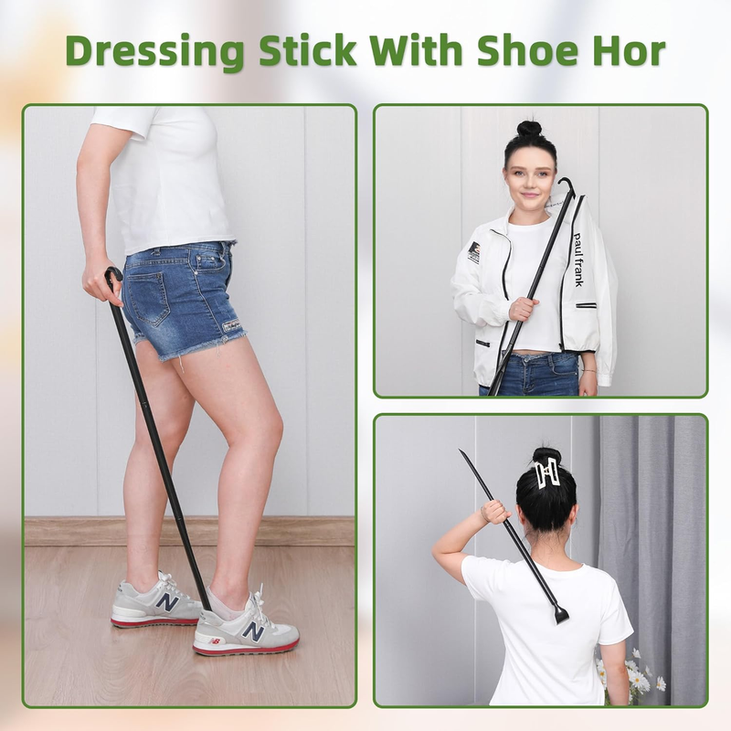 ?Multi functional detachable auxiliary dressing rod?The detachable dressing pole has three replaceable plugs and three functions for you to use: itching and scratching, assisting in putting on shoes, and assisting in putting on clothes. You can replace them according to your own needs. The detachable design makes it easy to carry