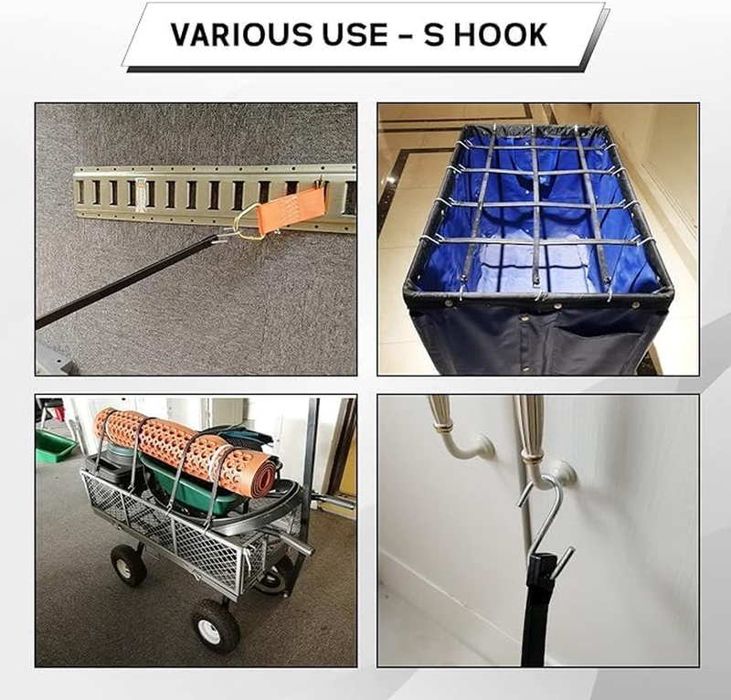 Rustproof Metal S-hooks: The S-hooks are extremely easy to attach to the ends of the straps and will not unhook or loosen, they are easy to secure, ensure that goods will not fall off at rest or in motion, and have a superb pulling and carrying capacity. The tarp straps can be easily tied together with many items, storing and transporting essentials and meeting your work requirements in two seconds