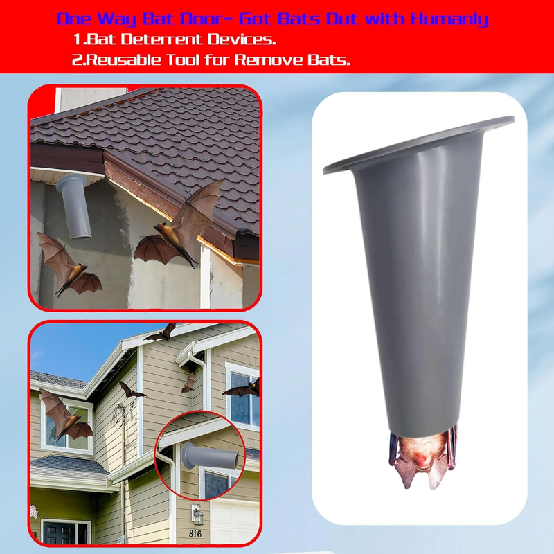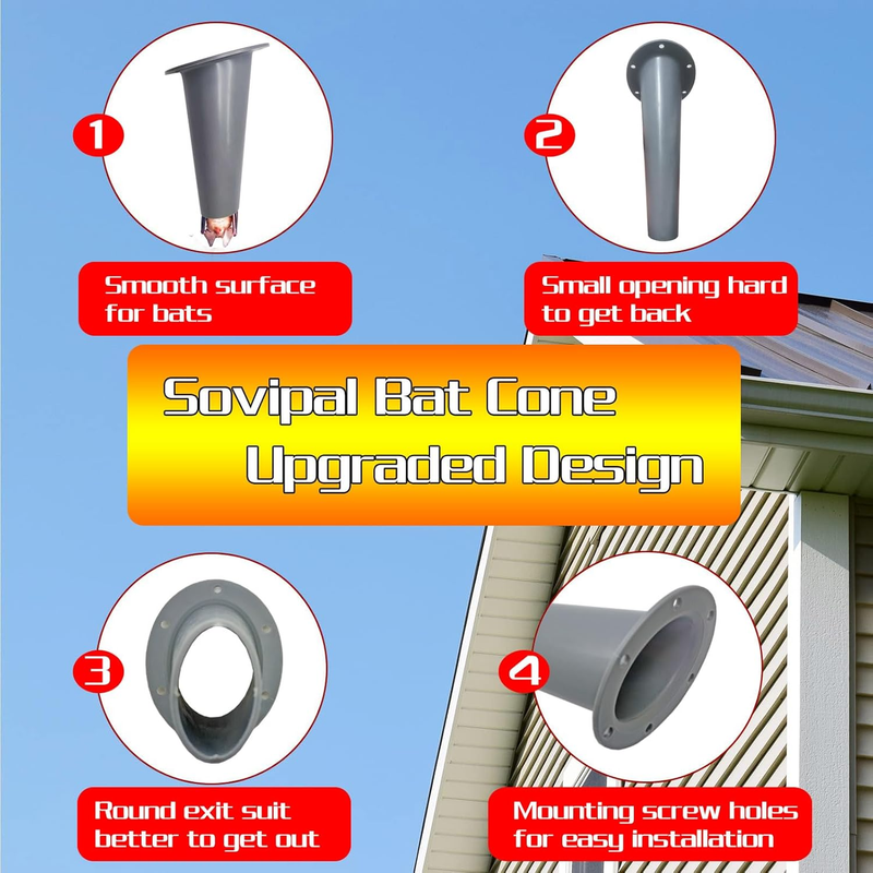 Upgraded Design: This bat cone features a completely new elliptical design, making it easier for bats to climb out. The 15-degree downward slope ensures that once the bats climb out, they can't climb back in, because of the smooth interior-surface and elongated tube design, which provides a humane way to prevent their return.