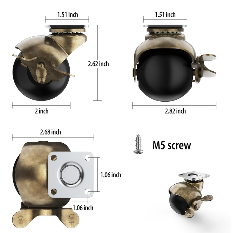 MULTIPLE USE: Spherical casters are applicable for multiple use due to its smooth and quiet feature. These antique brass casters are mainly apply on furniture, like wooden cabinet, sofa, table, bookshelf and so on.