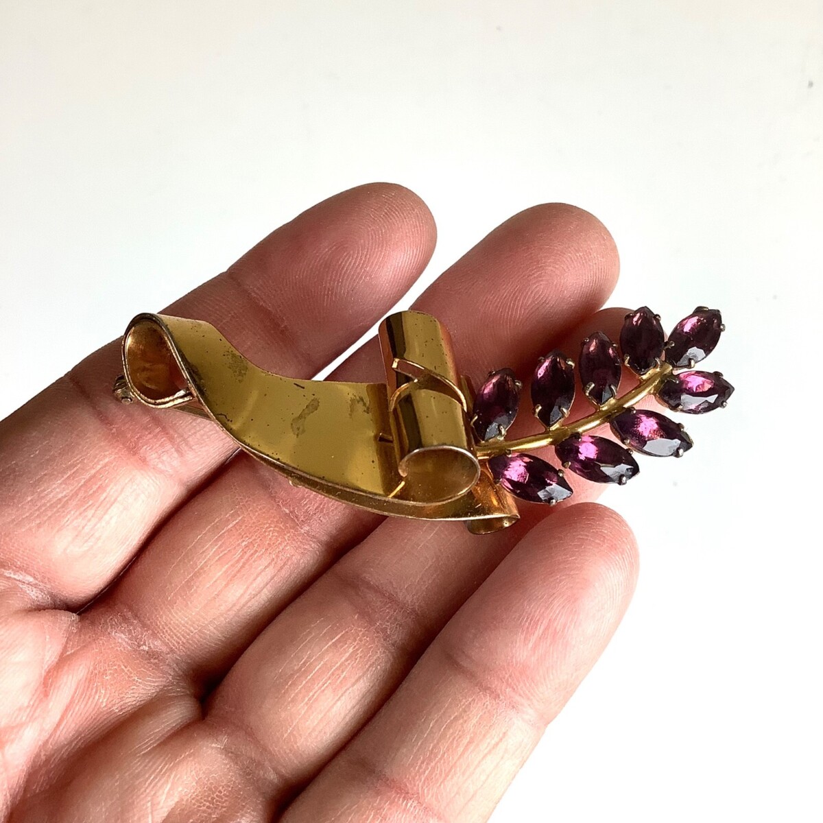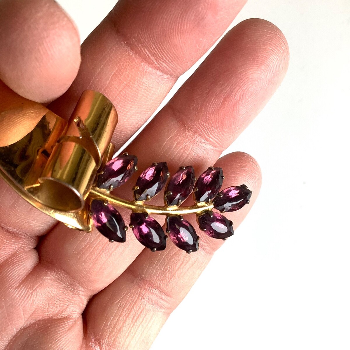 Vintage Gold Vermeil Sterling Silver Brooch Purple Stones MCM Design Mid Century