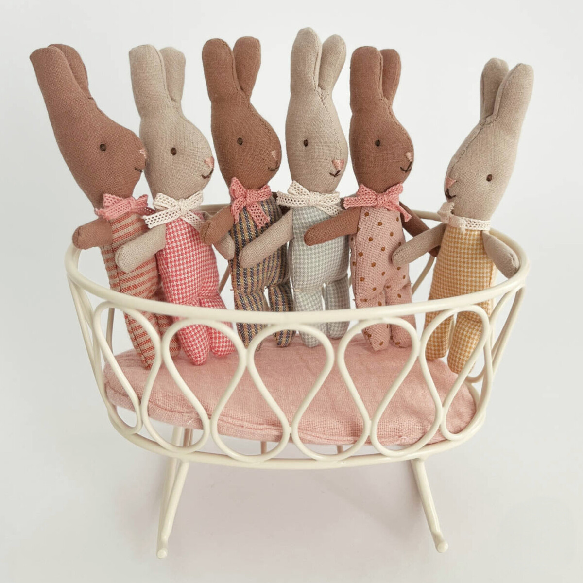 A charming mini Rabbit plush designed in a warm, Scandinavian-inspired style. Soft, lightweight, and perfect for nursery decor, pretend play, or as a small gift. Available in several cute fabric patterns such as gingham, stripes, and polka dots.
