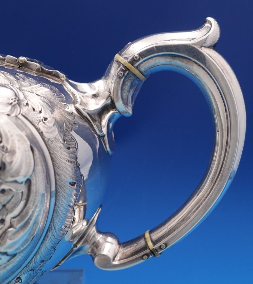 Elkington English Victorian Sterling Silver Tea Pot 3-D Finial Chased (#8437)
