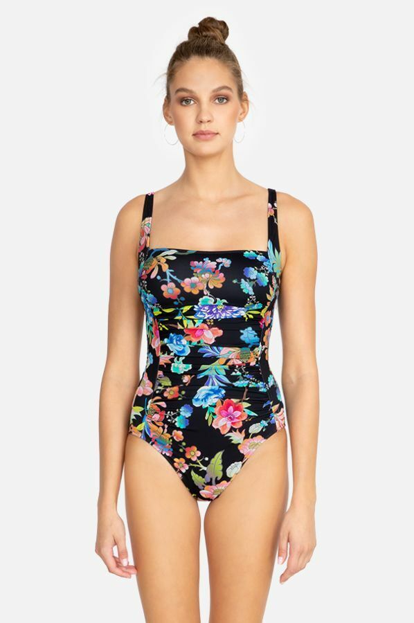 This is a great brand new with tags Johnny Was swimsuit. The Dreamer Bandeau swimsuit in black with floral print. Brand new with tags.