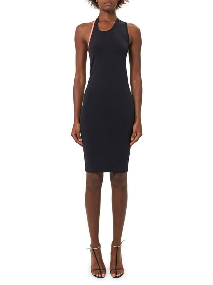 NWT Helmut Lang Asymmetrical Tank Dress Onyx Black & Pink Trim XS