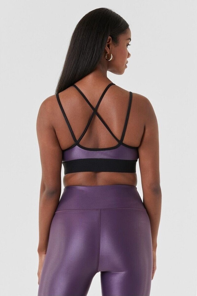 Brand new with tags Noli Yoga Jolie strappy studio sports bra in Amethyst purple color with black trim. No lining/padding. Size XS