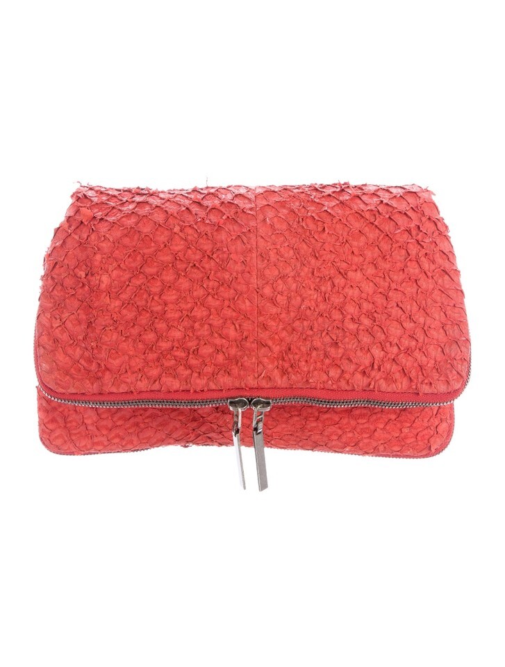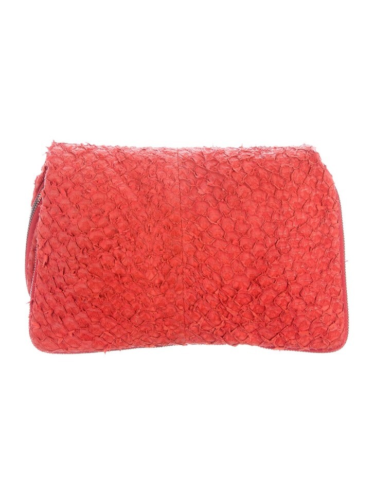 Helmut Lang Styx Orange Fish Scale Leather Foldover Clutch Purse