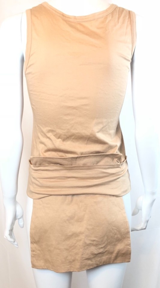 This is a great Helmut Lang top. Classic Vintage piece from the late 90?s when Helmut was still the designer. Tan cotton tank with folded over waist banding and unique flap like detail in back. Excellent condition but has one light spot on the front band as shown
