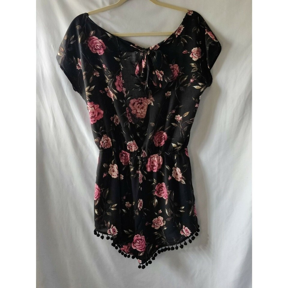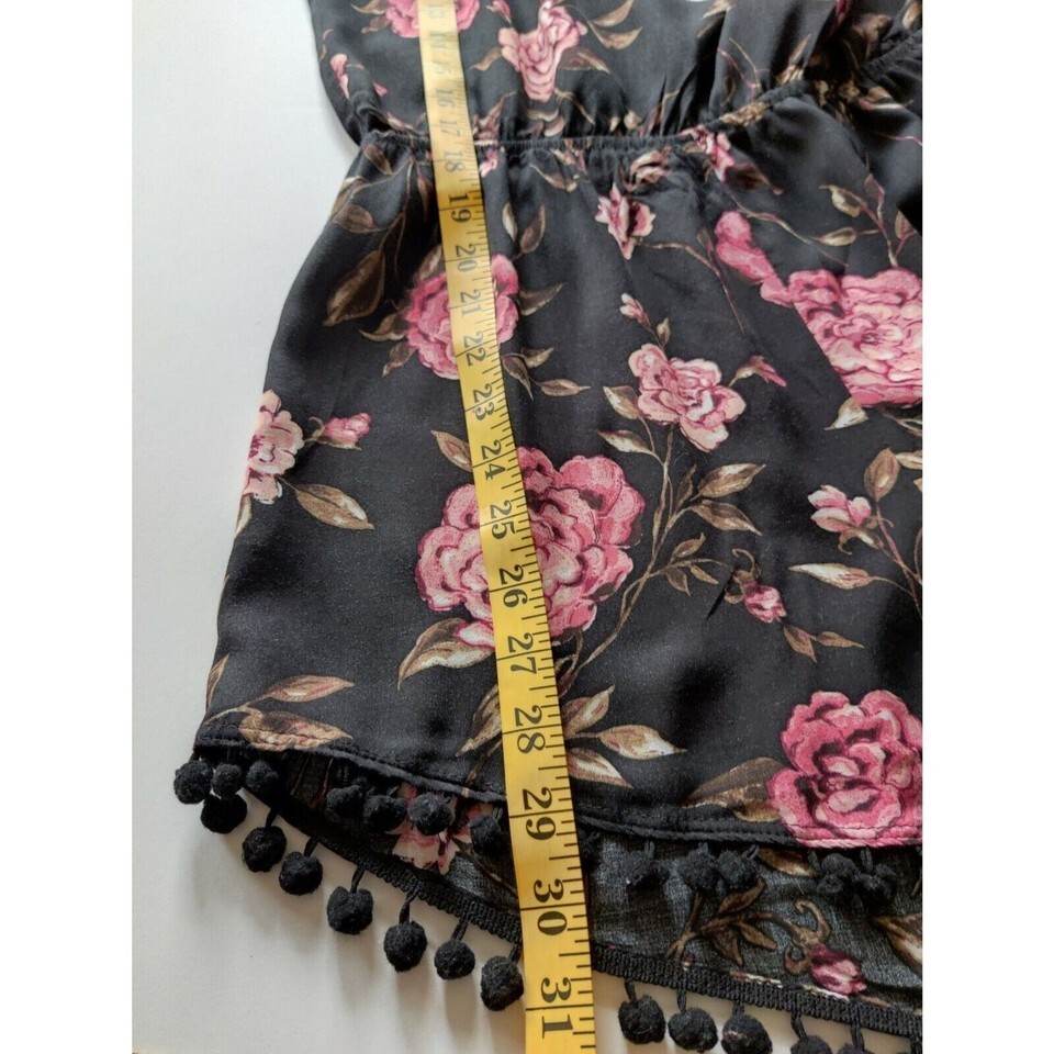 Mimi Chica Floral Elastic Waist Romper Short Sleeve Black Womens Size Medium