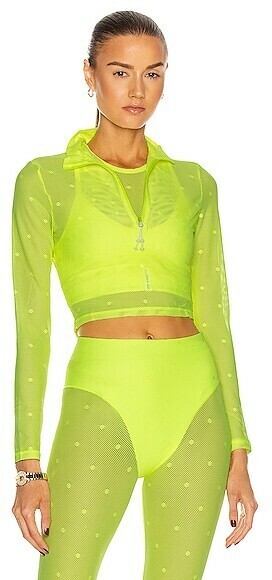 This is a great Adam Selman Sport workout top. Bright neon yellow stretch sheer mesh lace crop top with zipper trim. PLEASE NOTE THAT THERE IS NO BRA/UNDERLAYER INCLUDED. LISTING IS FOR THE TOP ONLY WHICH IS COMPLETELY UNIFORMLY SHEER. Brand new with tags. Matching legging available in separate listing.