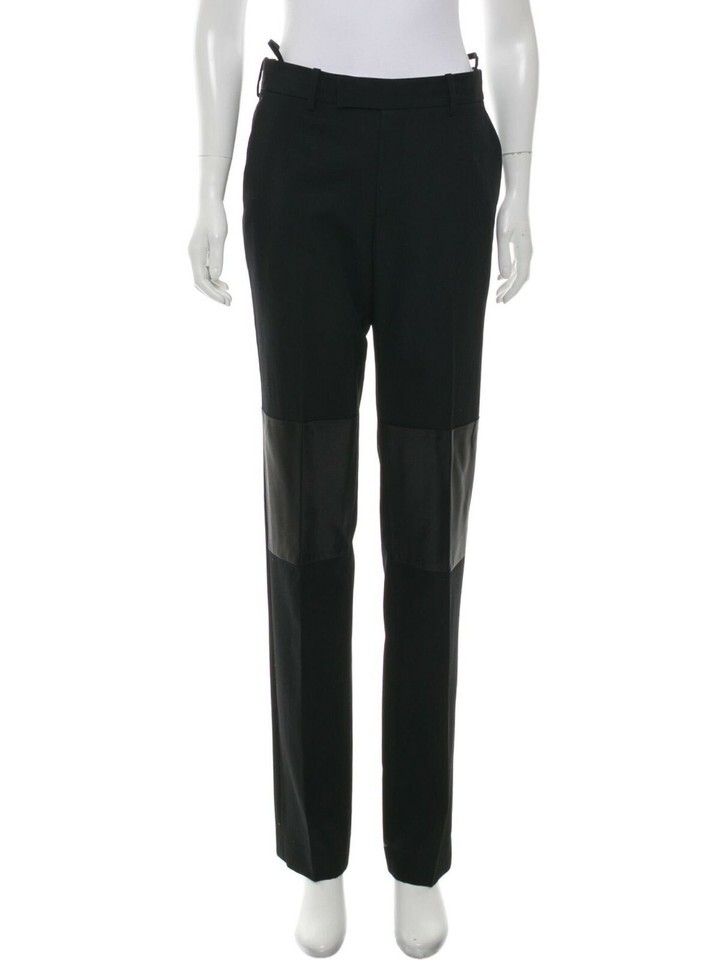 This is a great pair of Helmut Lang pants. Retail $650. Straight-leg pant in Wool-twill with Silk-satin panels on the front legs.Two back welt pockets, 2 side slant pockets. High-rise cut. Concealed hook, button and zip fastening at front. Size 0.
