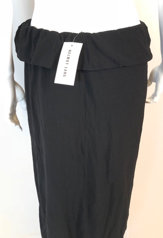 This is a great Helmut Lang skirt. Vintage archival piece from the 90s when Helmut was still the designer. Black nylon mesh skirt with bubbly shape and gathered foldover waist with drawstring. New with tags