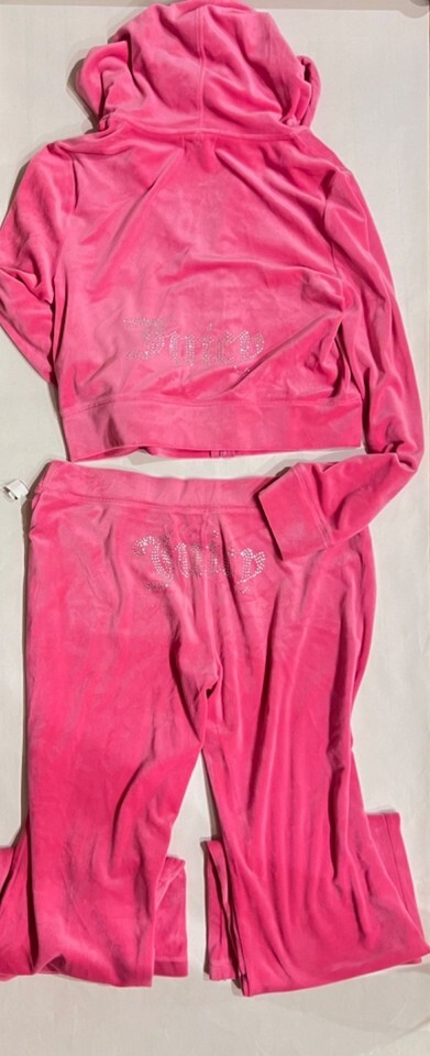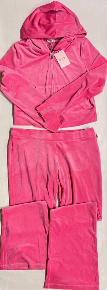Juicy Couture Bling Velour Tracksuit Hoodie & Pants Set Hot Pink L NWT