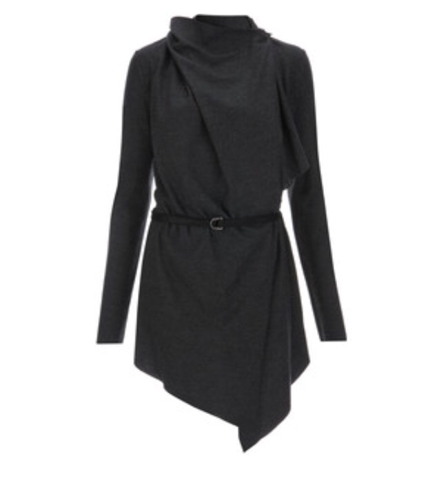 for styling only). Great draping detail, with metal hook closure at neck and suede leather adjustable slide belt. Gently preowned with no flaws. $395 retail.