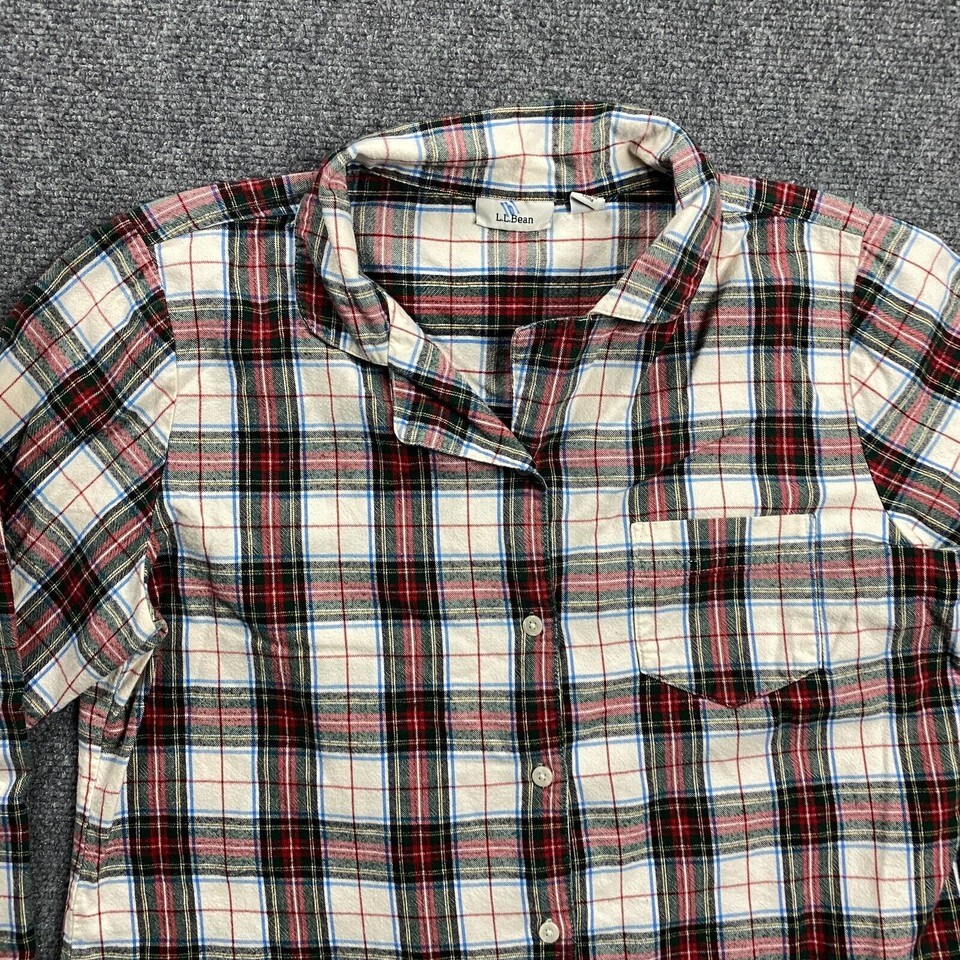 LL Bean Pajama Top Women's Petite Medium Plaid Flannel Button Up PM Cotton