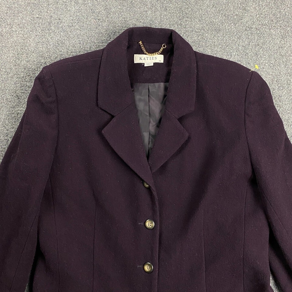 Katies Blazer Women's 14 Purple Coat Outerwear Formal 3 Buttons Wool Blend