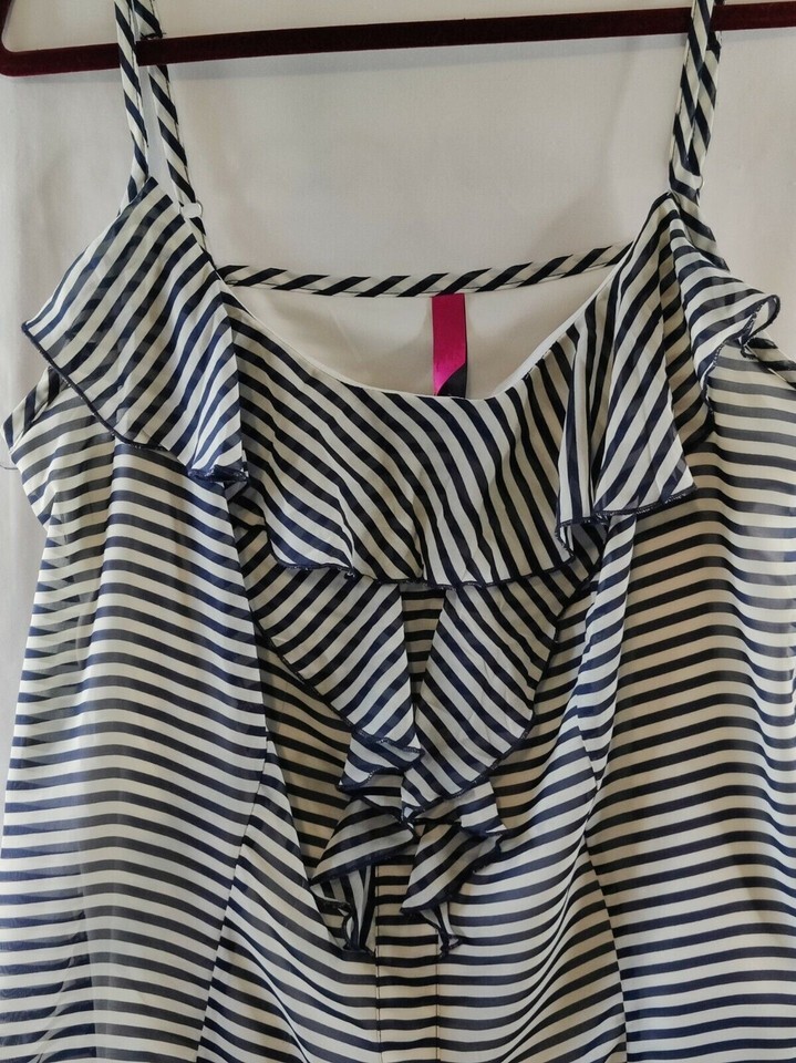 Pure Energy Striped Ruffle Tank Top Blouse Blue/White Women's Size 2