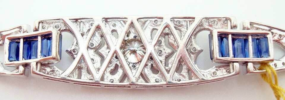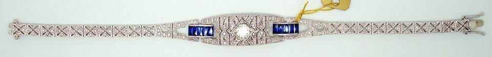 The length of the bracelet is 7 1/4" long, it weighs 8.8 dwt., and this bracelet is a contemporary piece made in the Art Deco style. Breathtaking!