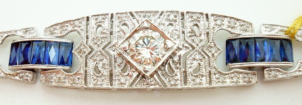 14k Gold Art Deco Style Genuine Natural Diamond and Sapphire Bracelet (#J2694)