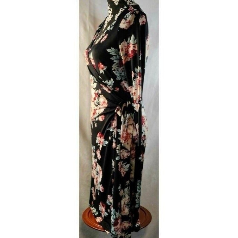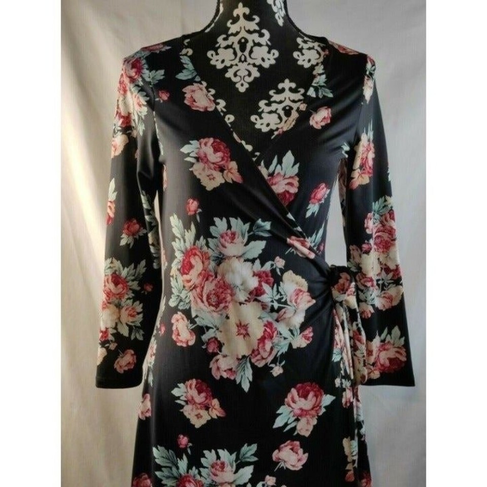 Very Vollbrach Floral Wrap V-Neck Long Sleeve Dress Black Womens Size XS