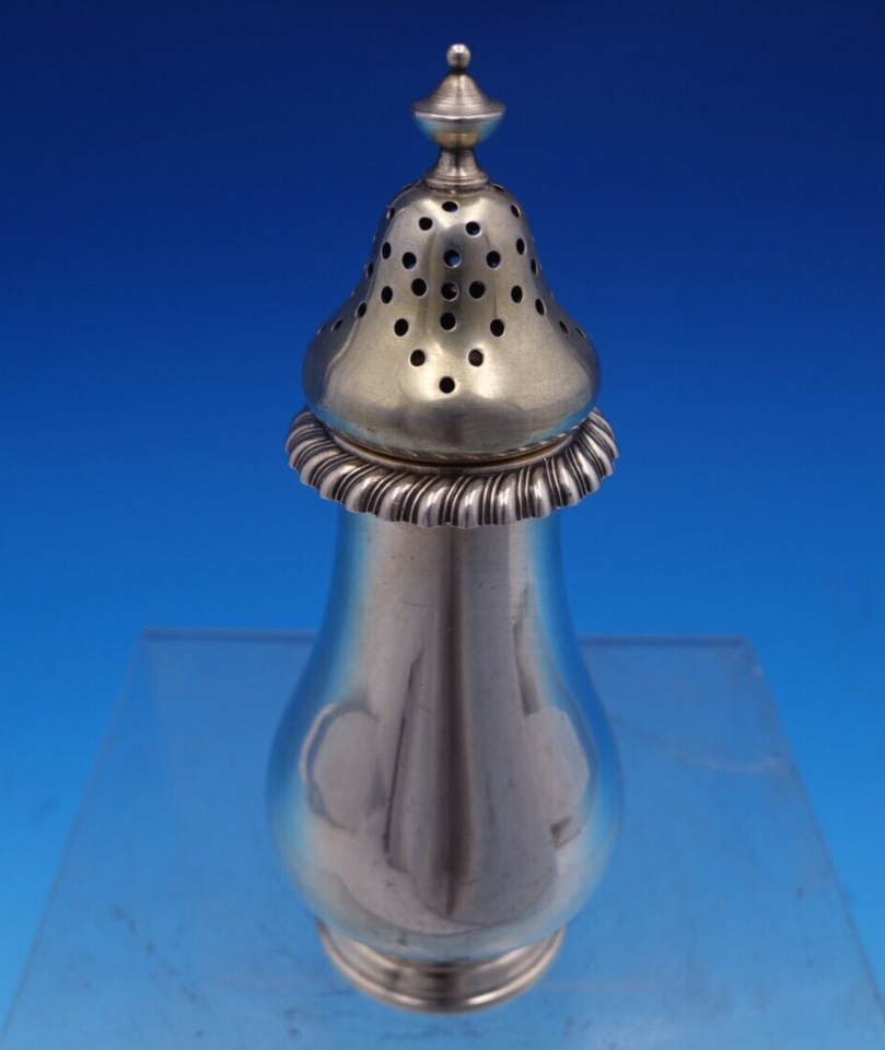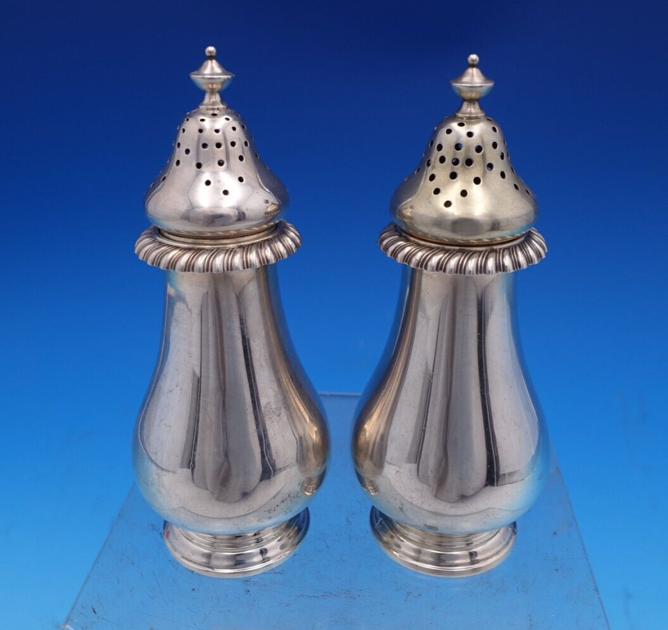 Wonderful English Gadroon by Gorham sterling silver salt and pepper shaker two-piece set marked #35. The pieces measure 4 7/8" tall and together weigh 4.91 troy ounces. They are not monogrammed and are in good estate condition. Fantastic!