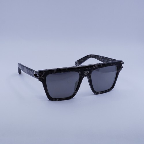 Philipp Plein SPP108V 721X Grey Havana/Smoke With Gunmetal Mirror 56-19-145 Sunglasses New Authentic