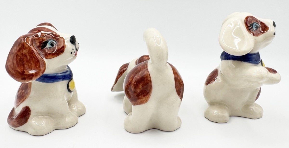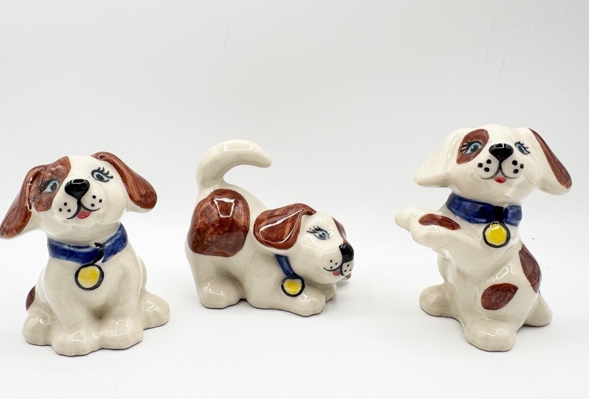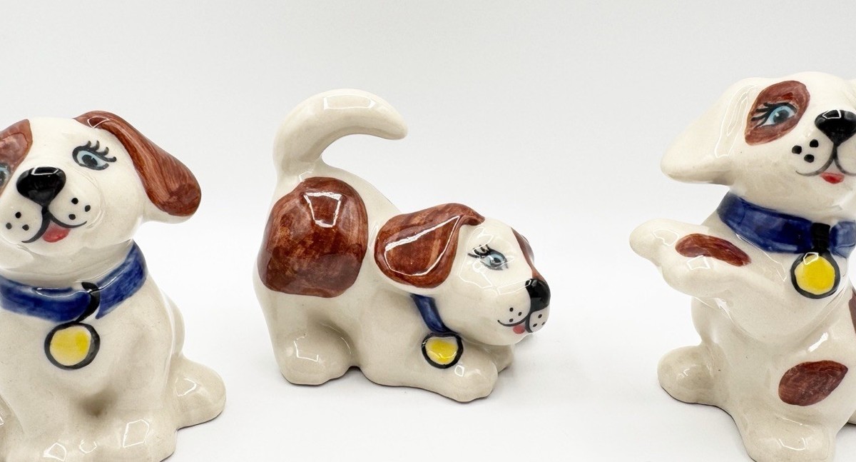 Set of 3 Polish Pottery Ceramic Playful Puppies