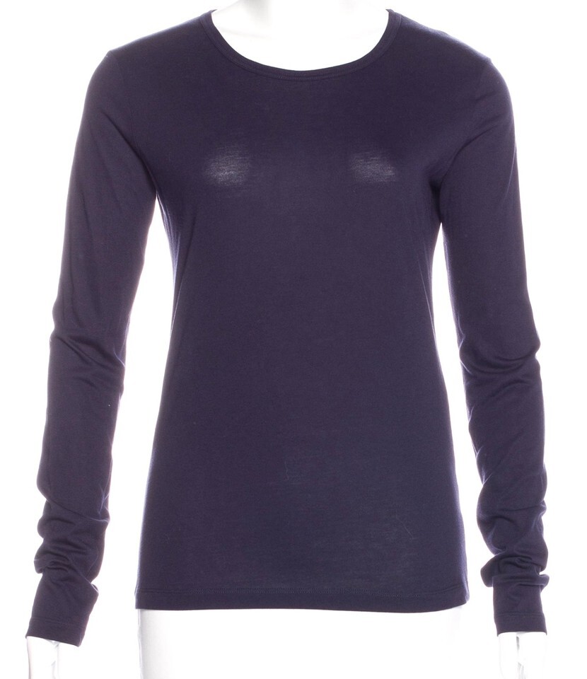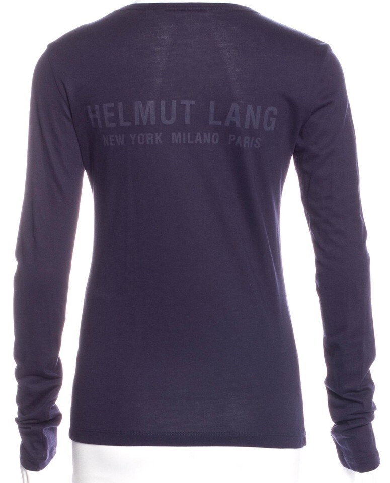 This is a great Helmut Lang top. Classic Vintage piece from the early 2000s when Helmut was still the designer. Navy blue cotton long sleeve with Helmut Lang logo on the back. Size: 42 Italian (about US Small)