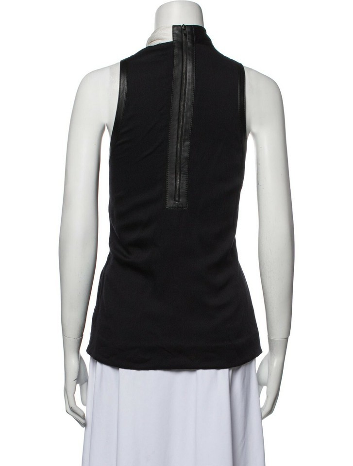 This is a great Helmut Lang top. The Pearl Viscose twist top in black and white with black leather trim. Zip back. Excellent lightly preowned condition, no flaws