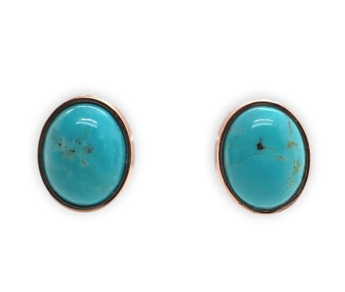 14k Rose Gold Genuine Kingman Turquoise Stud Earrings 4.24 Carat TW (#J7142)