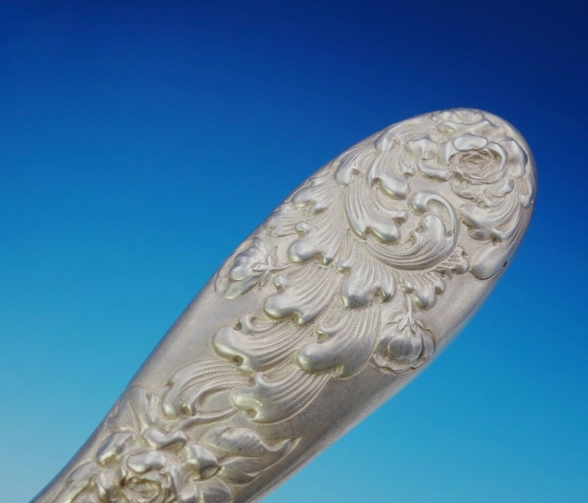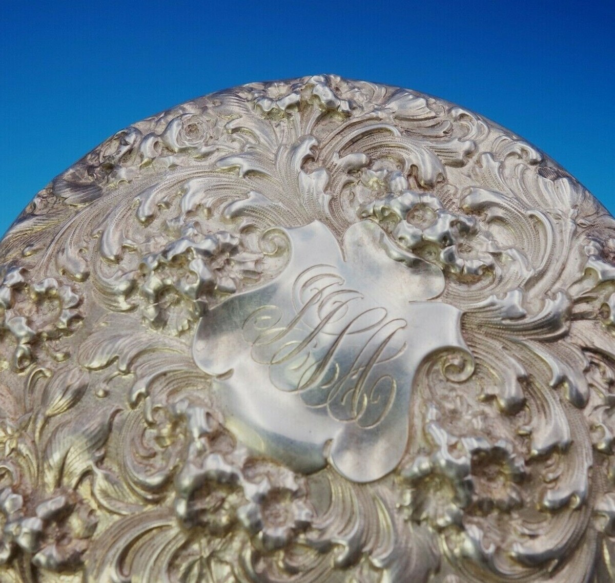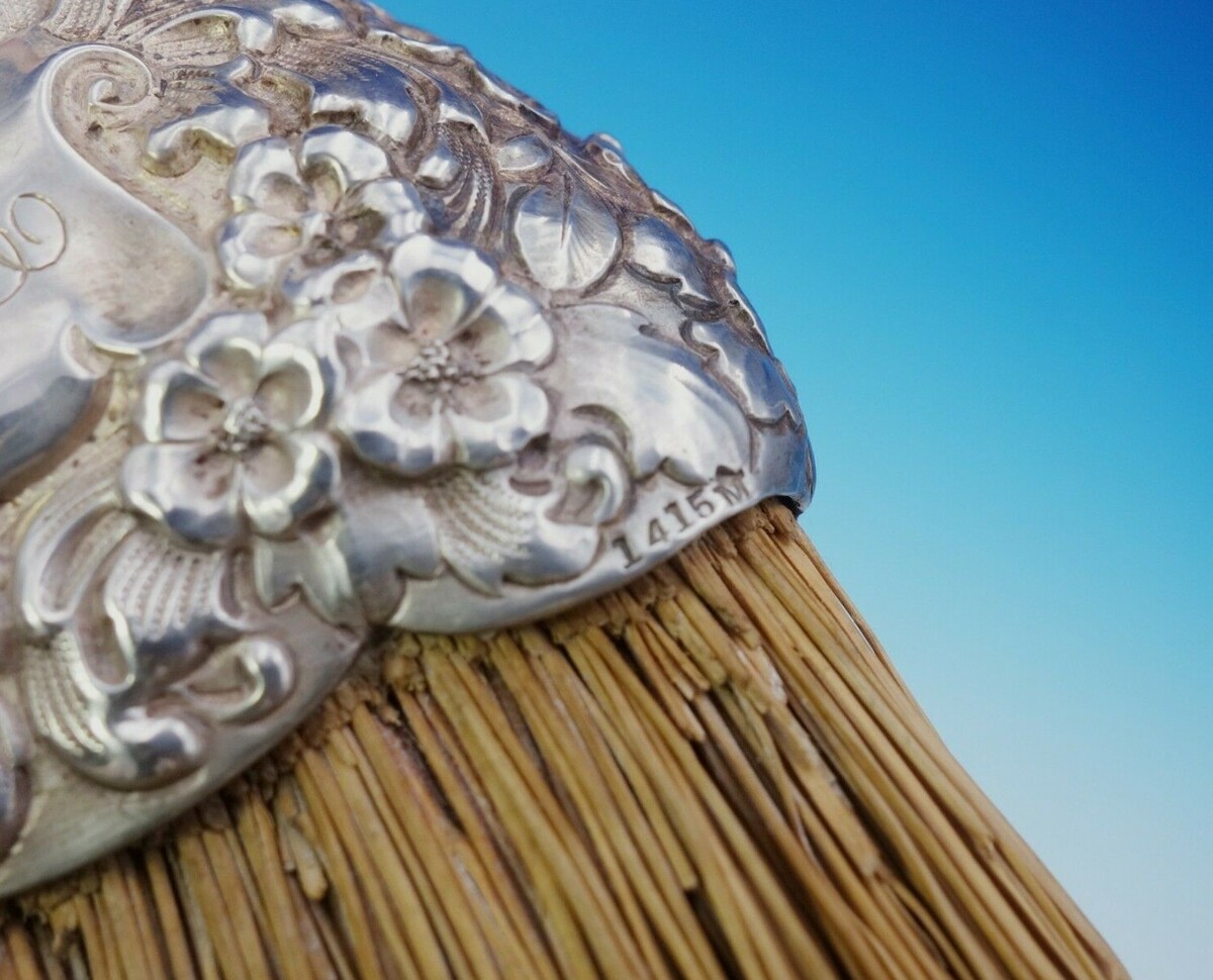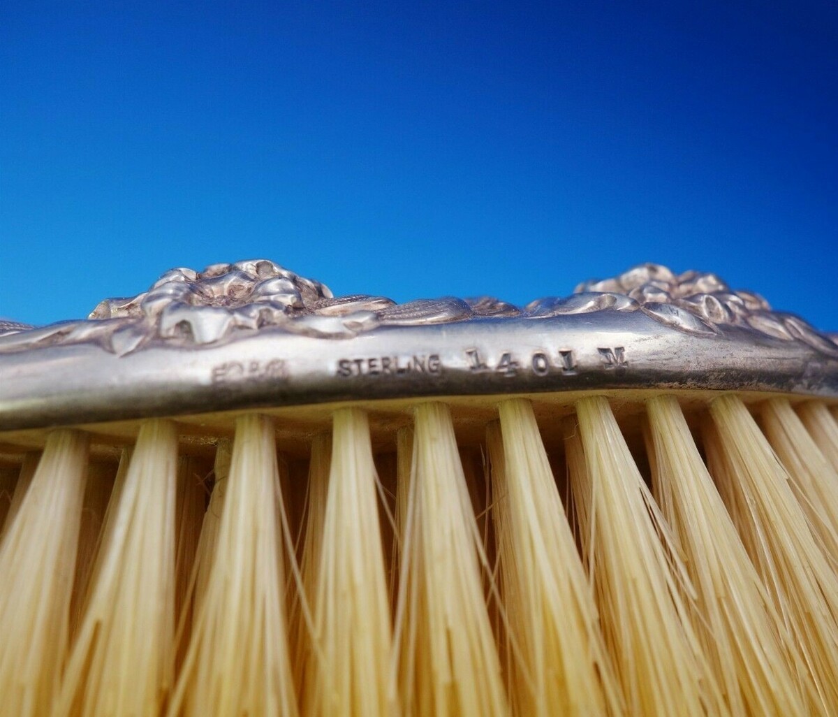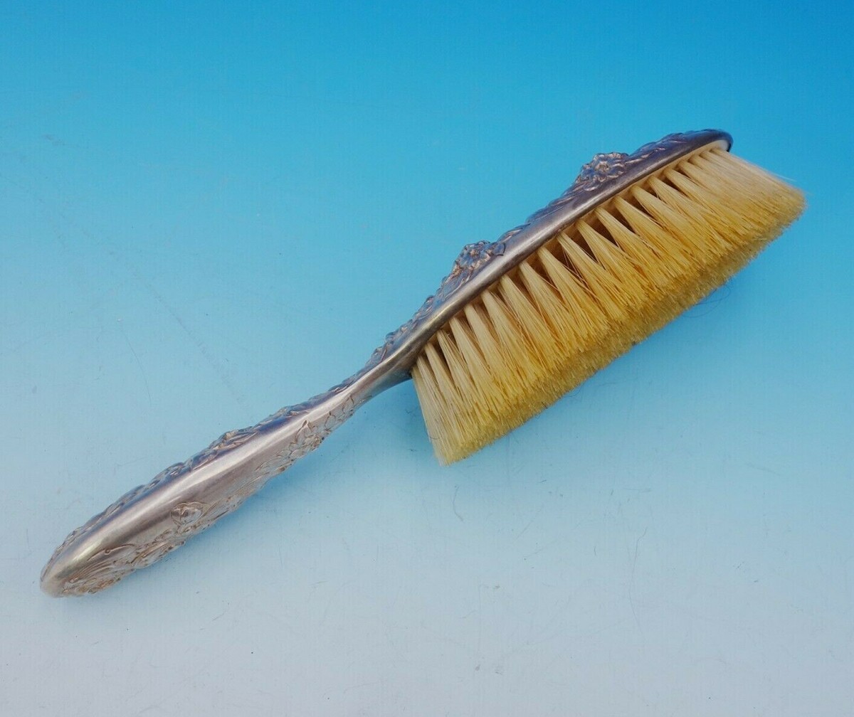 Pretty Fleury by Gorham sterling silver 3-piece dresser set. This set features repoussed flowers and scrollwork. This set includes: