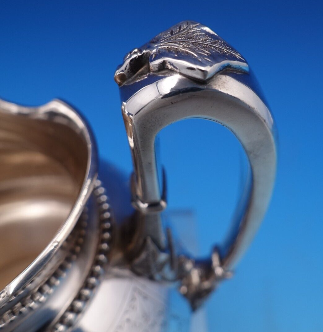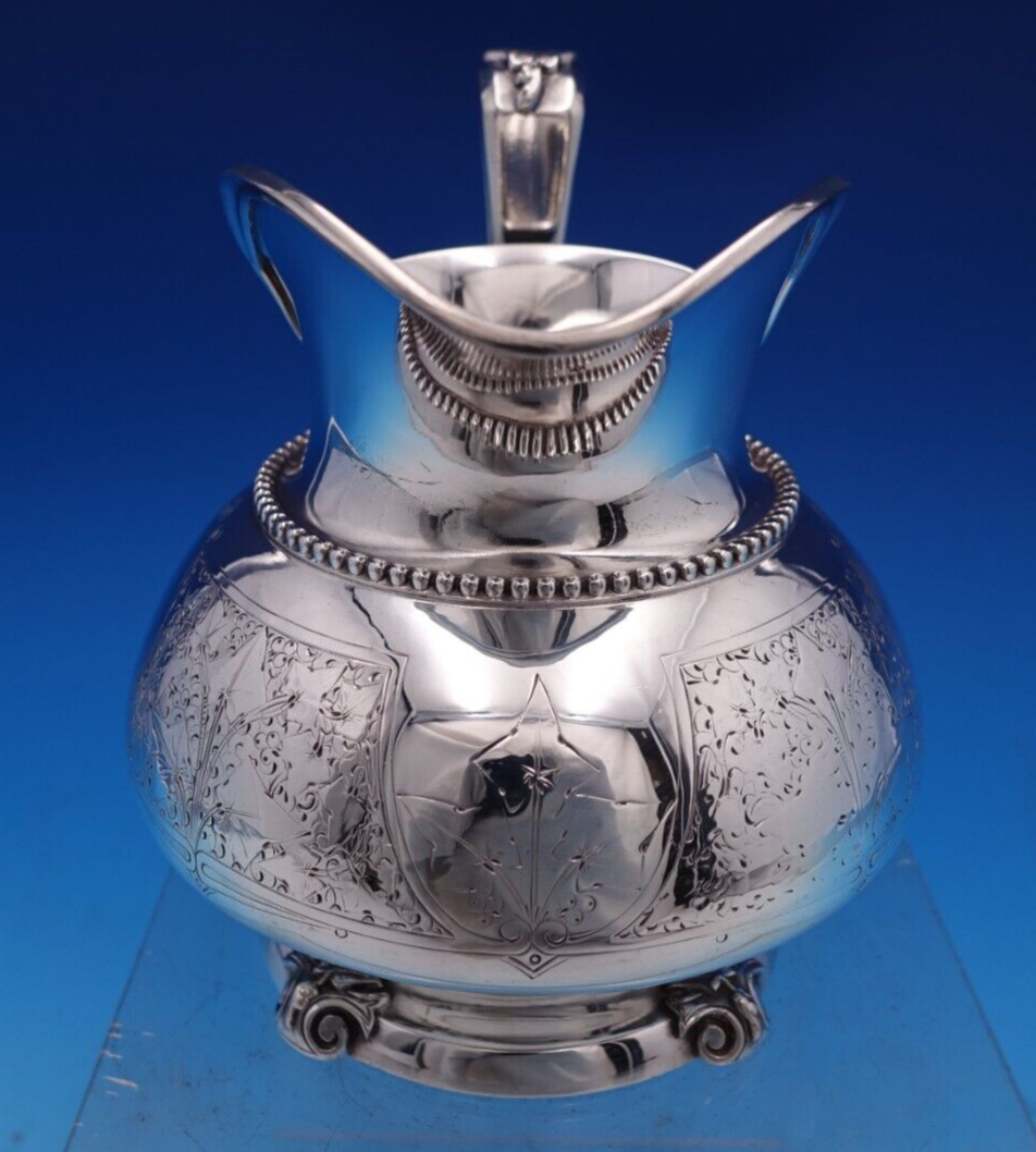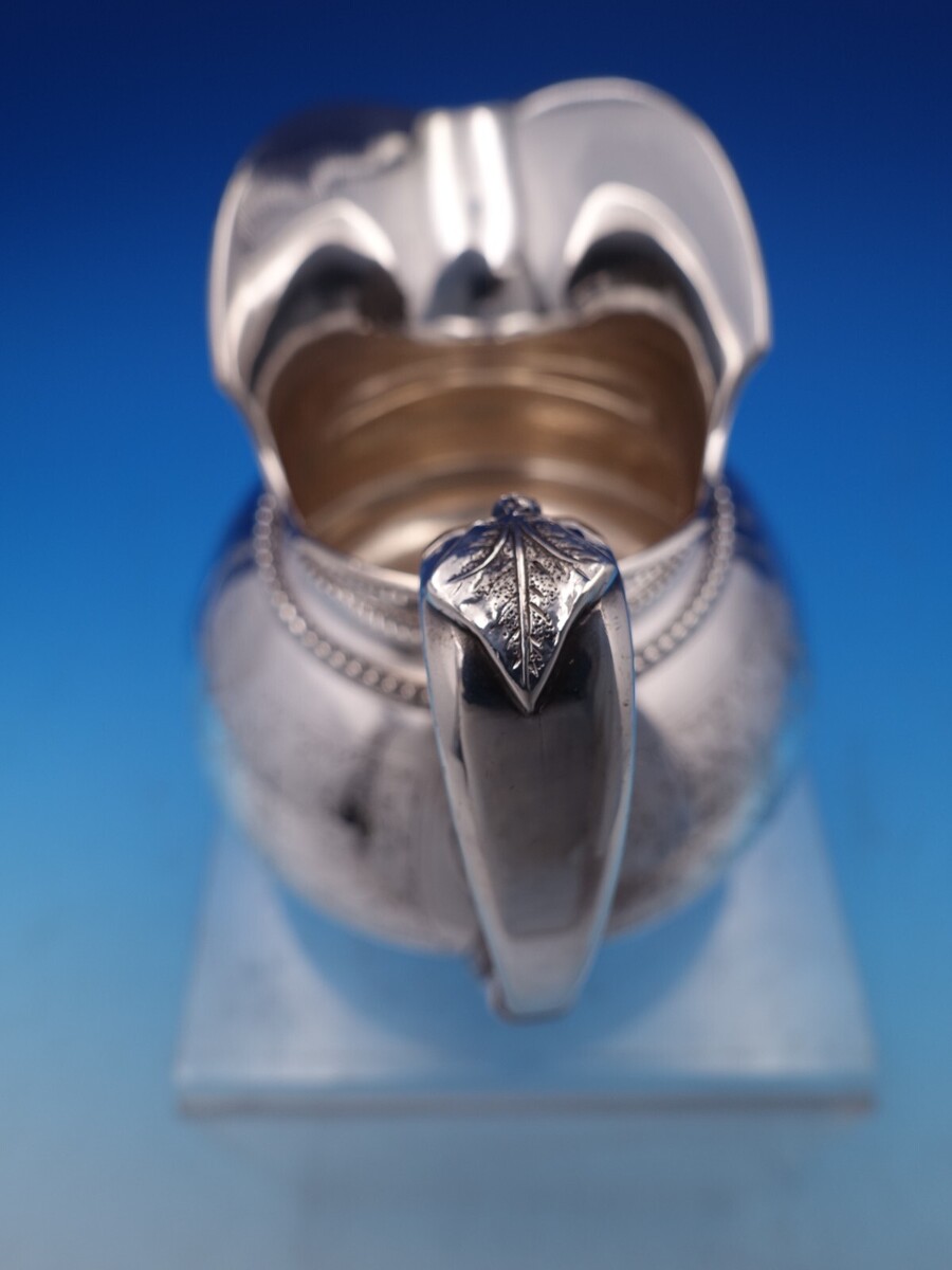 Outstanding Ivy aka Antique Ivy Engraved by Tiffany and Co sterling silver creamer marked #1375/1441. This creamer measures 5" x 5 1/4" and weighs 14.32 troy ounces. It is not monogrammed and is in good estate condition. Remarkable!