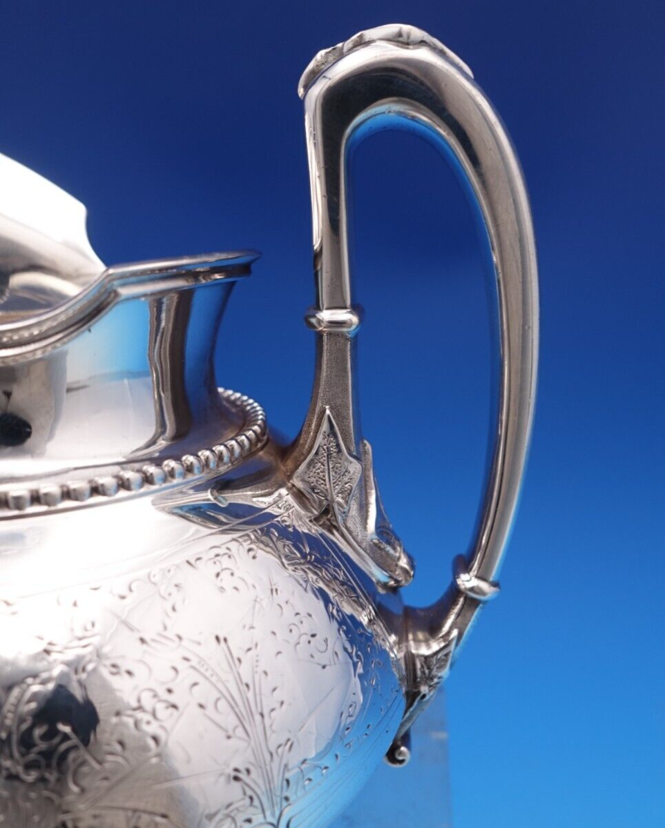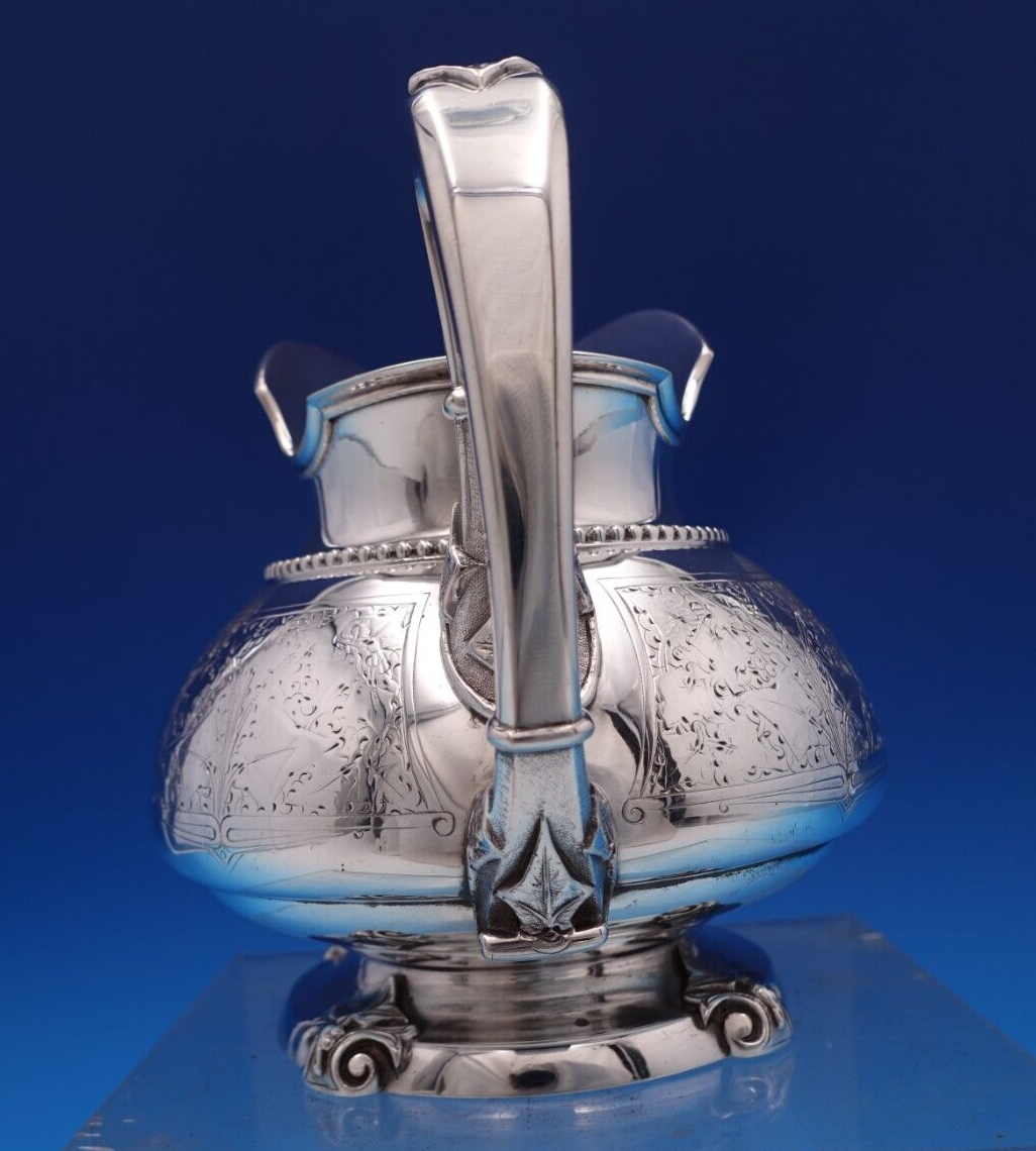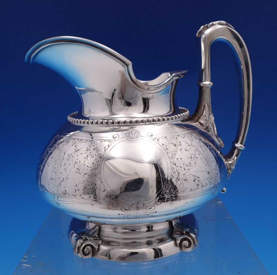 Outstanding Ivy aka Antique Ivy Engraved by Tiffany and Co sterling silver creamer marked #1375/1441. This creamer measures 5" x 5 1/4" and weighs 14.32 troy ounces. It is not monogrammed and is in good estate condition. Remarkable!