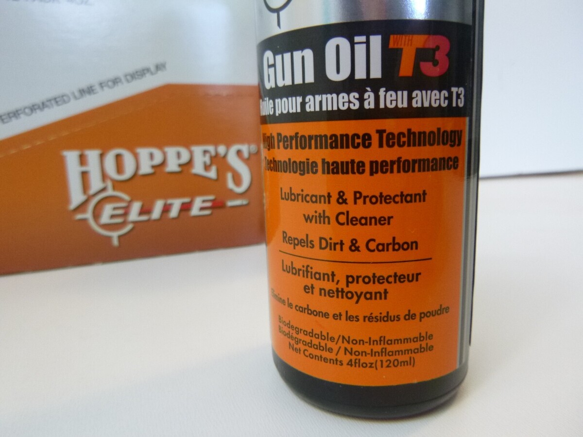 Hoppe's Elite Gun Oil T3 4 oz Lubricant and Protectant with Cleaner Box of 12 Bottles - NEW