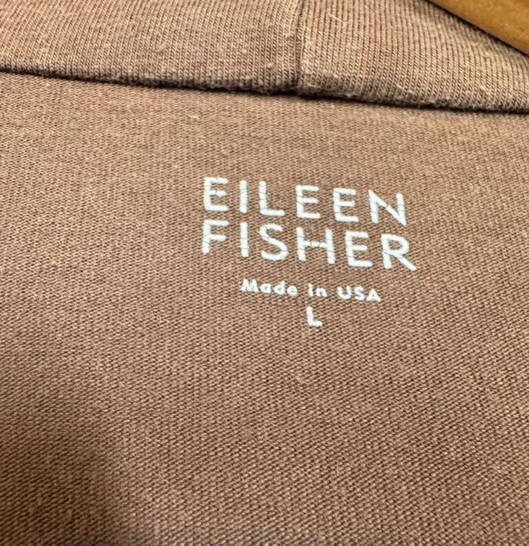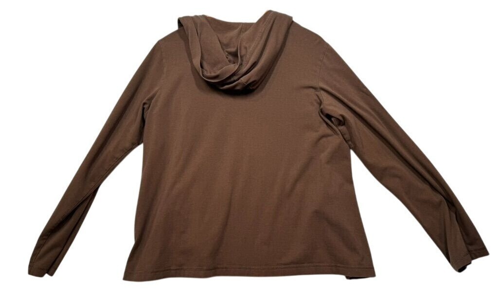 Eileen Fisher Open Front Cardigan Top Brown Hooded Organic Cotton Womens Large L