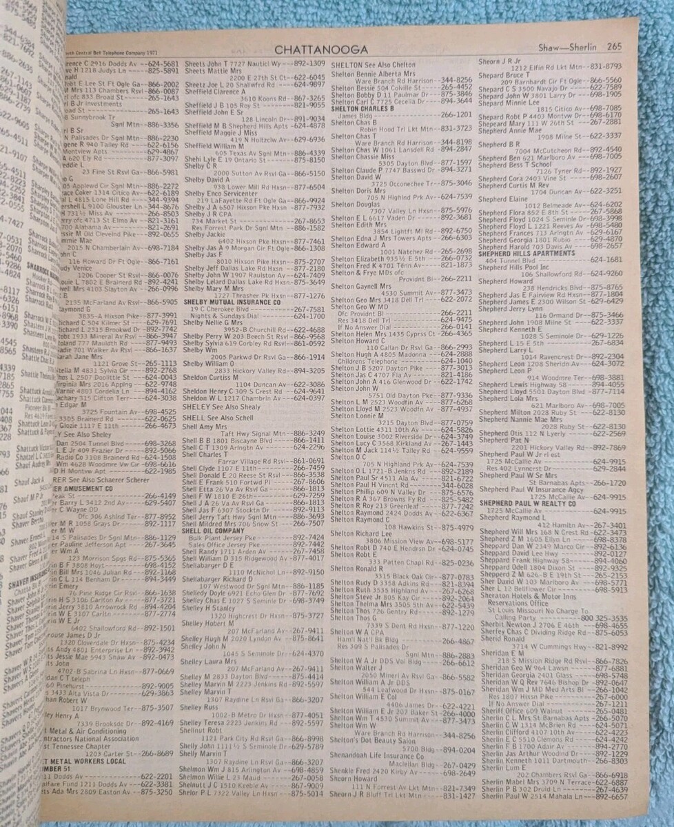 1971 Chattanooga Area South Central Bell Telephone Directory
