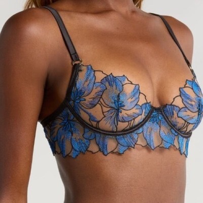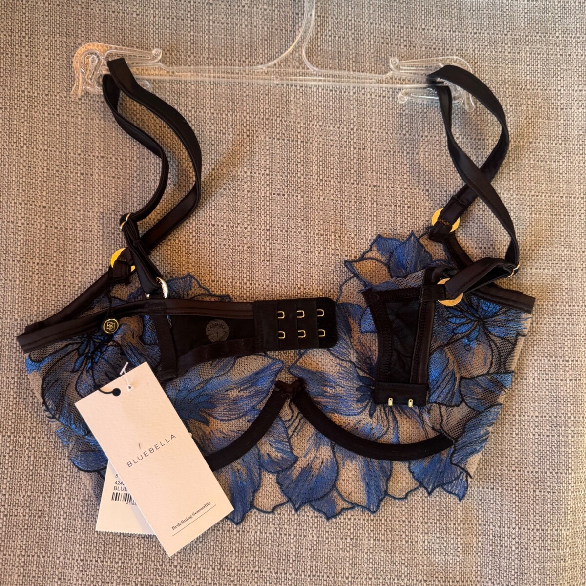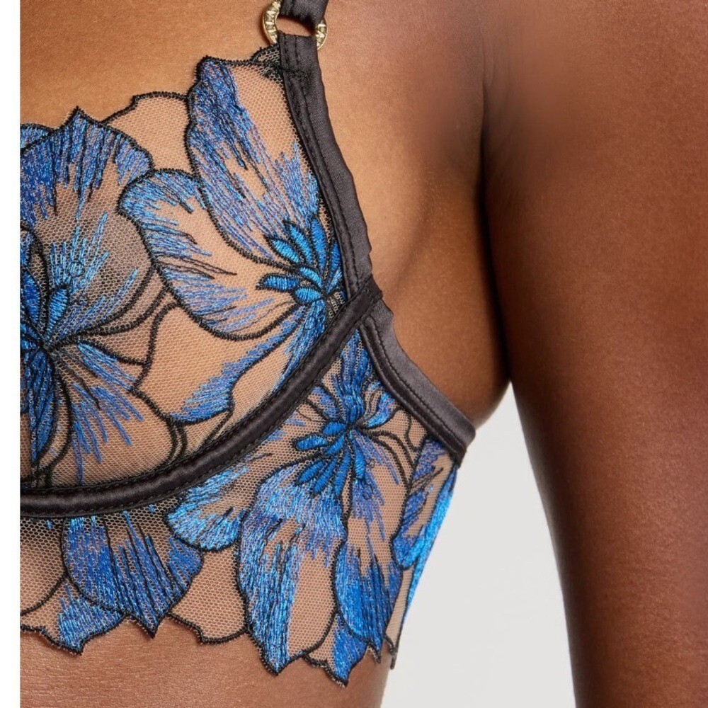 Bluebella Lyandra Underwire Embroidered Lace Mesh Bra, Blue/Black, 32DD, NWT