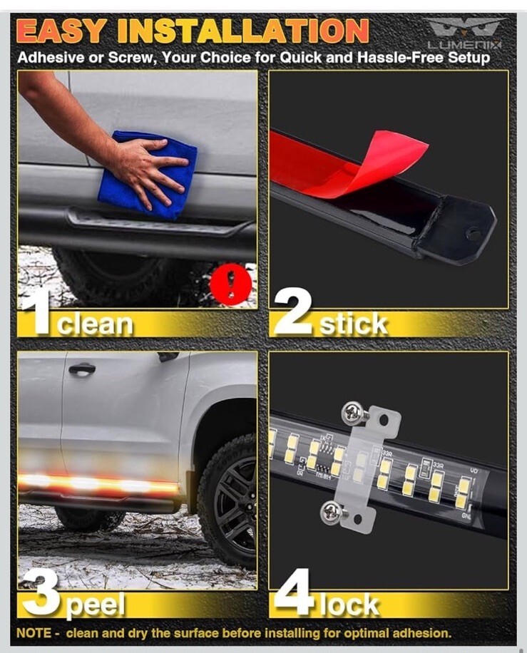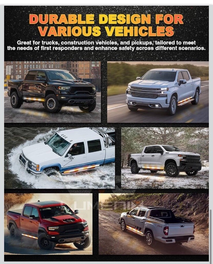 The LUMENIX 2PCS 70 Inch Emergency Strobe Lights Strip is a versatile and effective solution for emergency situations. These flexible LED running board lights provide bright Strobe White/Orange lighting, making them easily visible for safety and traffic control. With a durable construction and reliable brand name, these emergency strobe lights offer a crucial lighting solution for businesses and industrial facilities. Perfect for emergency preparedness and enhancing safety measures, these strobe lights are a practical and essential addition to any facility.