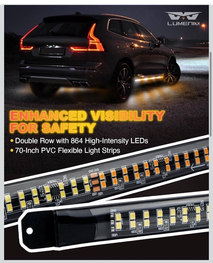 LUMENIX 2PCS 70 Inch Emergency Strobe Lights Strip LED Running Board Flexible...