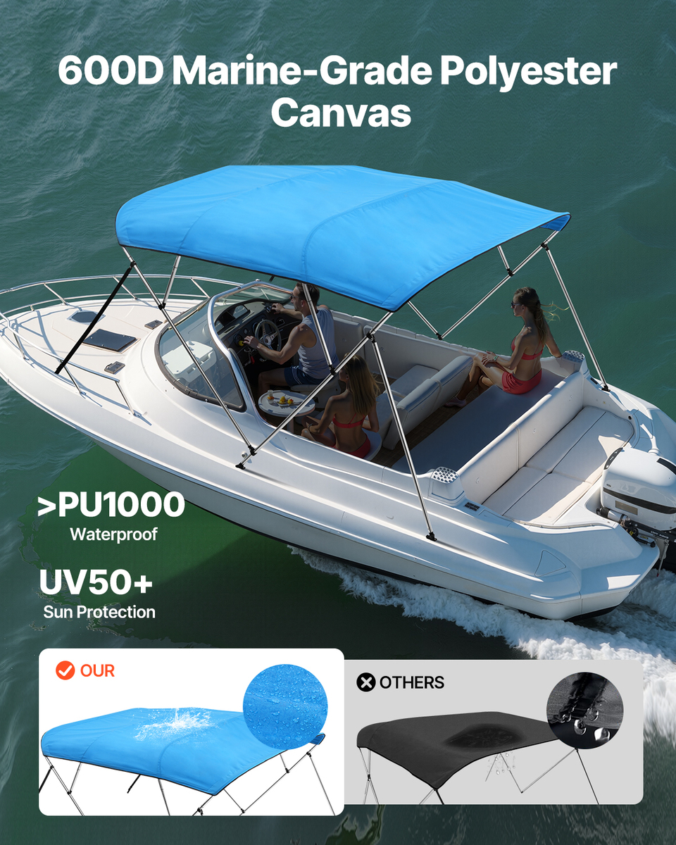 VEVOR 4 Bow Boat Bimini Tops, 600D Polyester, 96"Lx(73"-78")Wx54"H, Pacific Blue
