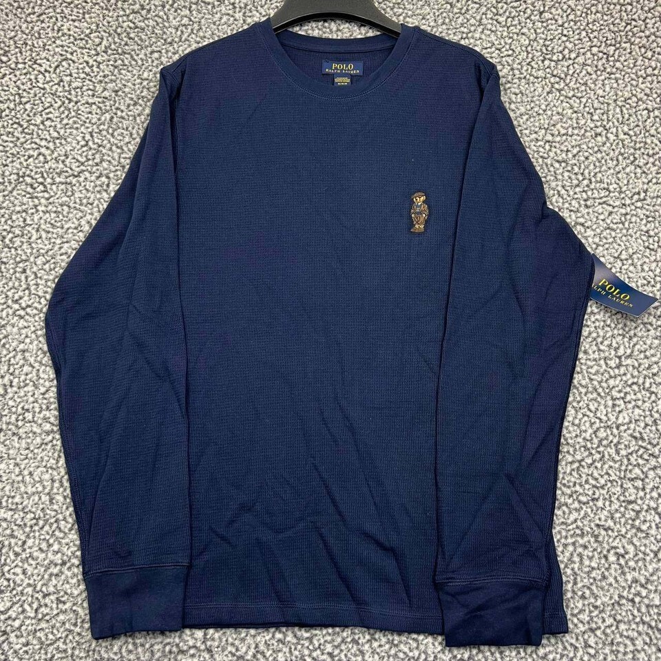 Polo Ralph Lauren Shirt Men Medium Blue Sleepwear Long Sleeve Waffle Knit New M