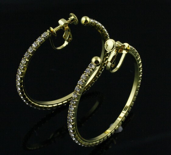 1 Pair Clip On Screw Back Rhinestone Hoop Earrings Silver Gold Small to 2XL