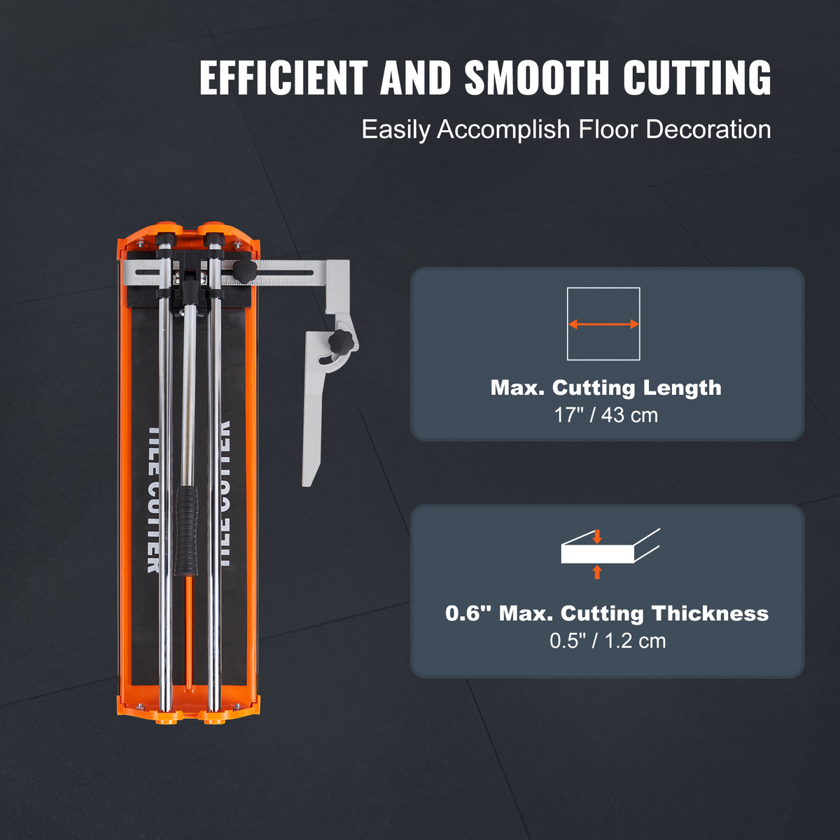 VEVOR 17"Manual Tile Cutter, Double Rails Tungsten Carbide Wheel,Non-Slip Handle
