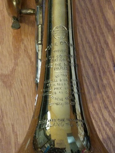 A vendre est un cornet de trompette en laiton Sib Antoine Courtois Paris avec embout Schlike dans un etui rigide Leblanc. Le numero de serie est 3470. L'etui rigide presente une certaine usure, notamment une doublure usee. La cloche est gravee de : "Hors Concours Chicago 1893 Saint-Louis 1904 Antoine Courtois brevete Facteur du Conservatoire National 8, rue de Nancy Paris 1er Prix Medaille d'or Paris 1878-1889-1905 Grands prix Liege 1905 Bruxelles 1910 Turin 1911 Geneve 1927" Seuls importateurs americains Leblanc Etats-Unis Le piston central est grave de : L 3470 A. Courtois Paris En France Les Pistons Valve sont numerotes 34/35/36 La trompette presente quelques rayures et traces d'usage.
