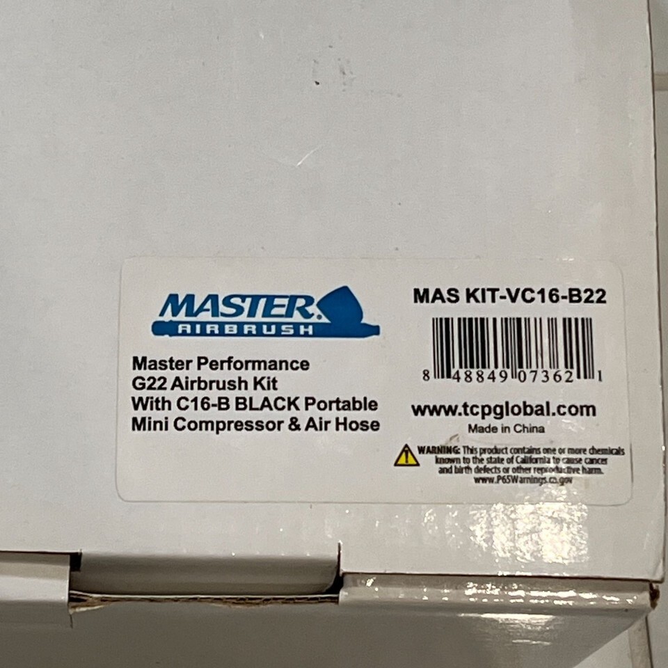 Master Performance G22 Airbrush Kit With C16-B Black Portable Mini Compressor &