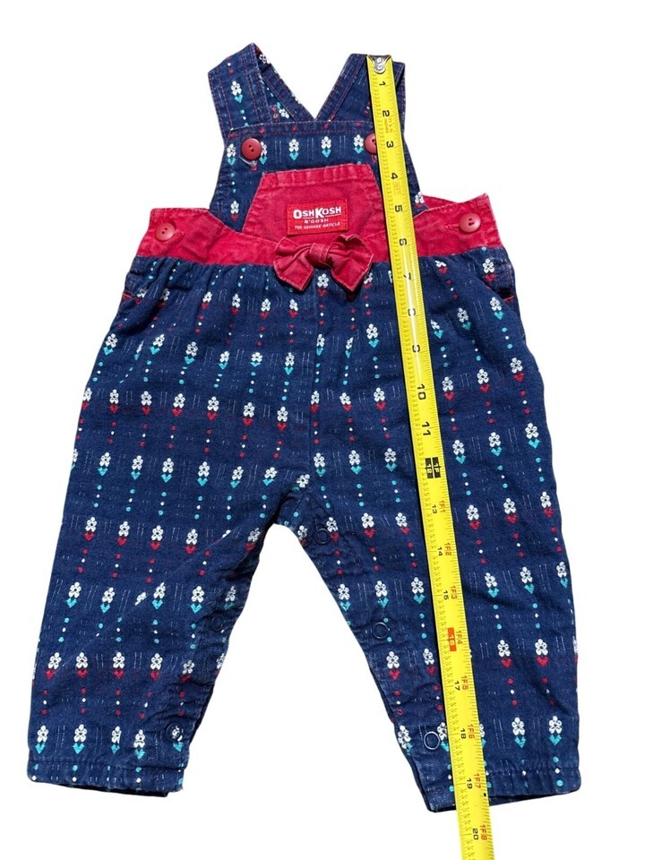Vintage OshKosh BGosh Infant Girls Blue & Red Floral Corduroy Overalls